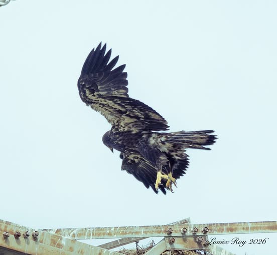 An eglet hovers above a Pinellas County cell phone tower where it was born. Photo by Louise Roy, March 13, 2026