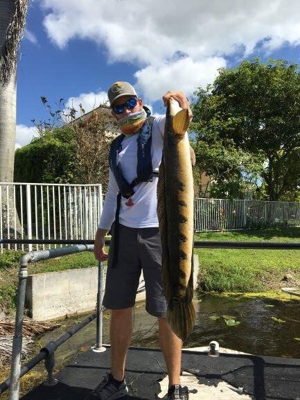 The bullseye snakehead, first documented in Florida in 2000, is a large, carnivorous fish capable of breathing air and surviving in low-oxygen waters. Like the swamp eel, it can survive in canals, marshes and swamps and may move short distances over land to a new habitat.