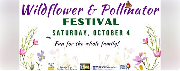 The Fall Wildflower and Pollinator Festival returns this year with a day of fun for the whole family! This free event is brought to you by Pinellas County Parks and Conservation Resources Department and sponsored by the Friends of Brooker Creek Preserve!