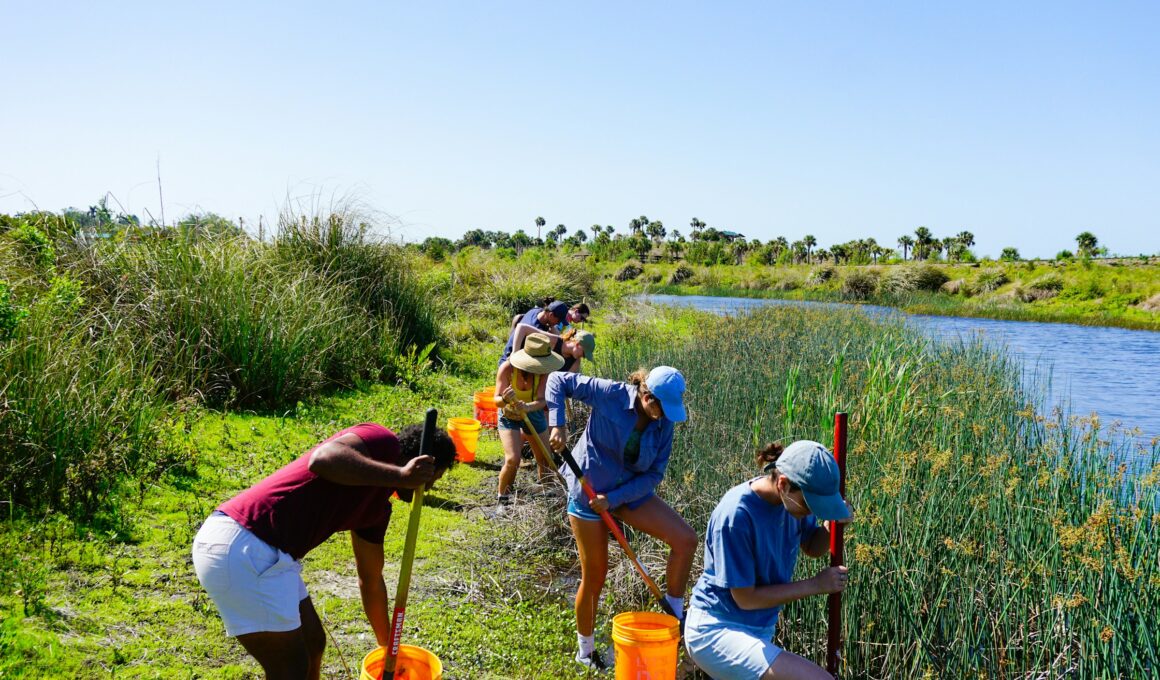 Volunteers from Eckerd College plant marsh grass at Robinson Preserve in Manatee County. Photo courtesy Tampa Bay Estuary Program