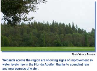With the aquifer at record high levels, water level recovery in lakes and wetlands will follow, says Warren Hogg, a hydrologist for Tampa Bay Water. "Lakes and wetlands are subject to so many other influences, such as drought and surface water drainage changes, that it's hard to document changes and their causes," he adds. "But they'll be evident in time."