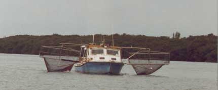 Most nights the water's very calm, making the tough work enjoyable, but foggy nights "when you can't see past the front of the boat and you know you have to keep working to get the catch" are dreadful. Still it's the challenge, never knowing what you'll confront, and the unforgettable sights - like propeller wash and nets aglow in a blue-white flame of tiny bioluminescent organisms, or a rocket launch against a jet black sky - that keep Hartley and other night fishers coming back. The hardy "do it yourselfers" are a unique brand of individuals, competitive but close. "If you need something for one of your boats, you can't go to the hardware store," muses Hartley. "You got to make it yourself." But that rugged individualism doesn't override an unwritten code of honor among shrimpers. "If you get in trouble, somebody always helps you out, even if they don't like you much." |