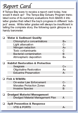 Clearly, bay managers have made significant strides in meeting the goals outlined in the 1996 Tampa Bay Master Plan. Still, as restoration continues, the goals have changed and new issues have emerged.