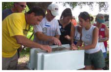 The dramatic upswing in the number of dead or injured sea turtles washing ashore in 2003 has sparked concern. Through November 22, the state documented 1655 strandings, mostly loggerheads and green sea turtles. By year's end, that number is expected to exceed 1800, nearly double the state's 10-year average and roughly 500 animals above the previous high. "And that may be as little as 10% of the actual number," says Allen Foley, a biologist with the Florida Fish and Wildlife Conservation Commission (FWC). Causes vary by region. Mounting deaths in southwest Florida are likely driven by red tide, a noxious algal bloom that has been known to kill fish and manatees, while an increased incidence of disease is suspected on the Atlantic coast. Shrimp trawlers, outfitted with turtle excluder devices whose openings may not be tall enough to prevent entrapment, also are thought to have played a part in the Panhandle. While four of Florida's sea turtles, the loggerhead (Caretta caretta), Kemp's ridley (Lepidochelys kempii), green (Chelonia mydas) and hawksbill (Eretmochelys imbricate), are found in Tampa Bay, loggerheads predominate and are the only sea turtle species to regularly nest on area beaches. Florida is home to one of only two globally significant loggerhead nesting populations. Manatee populations are faring better, based on the latest aerial count of 3276 animals in 2001, although a population viability analysis conducted by the FWC suggests that manatees could decline by 50% over the next 45 years and up to 80% in Southwest Florida. The model determines the probability of future population decline and extinction given a variety of scenarios that incorporate expected declines in carrying capacity through loss of warm-water refuges and increases in mortality from natural and human impacts. Presenters at BASIS 4 also discussed results of a three-part study by the region's Manatee Awareness Coalition comparing the effectiveness of education versus regulation in influencing boating behavior. The study concluded that regulation was more effective than education alone. For more information, contact Elsa Haubold at elsa.haubold@fwc.state.fl.us.